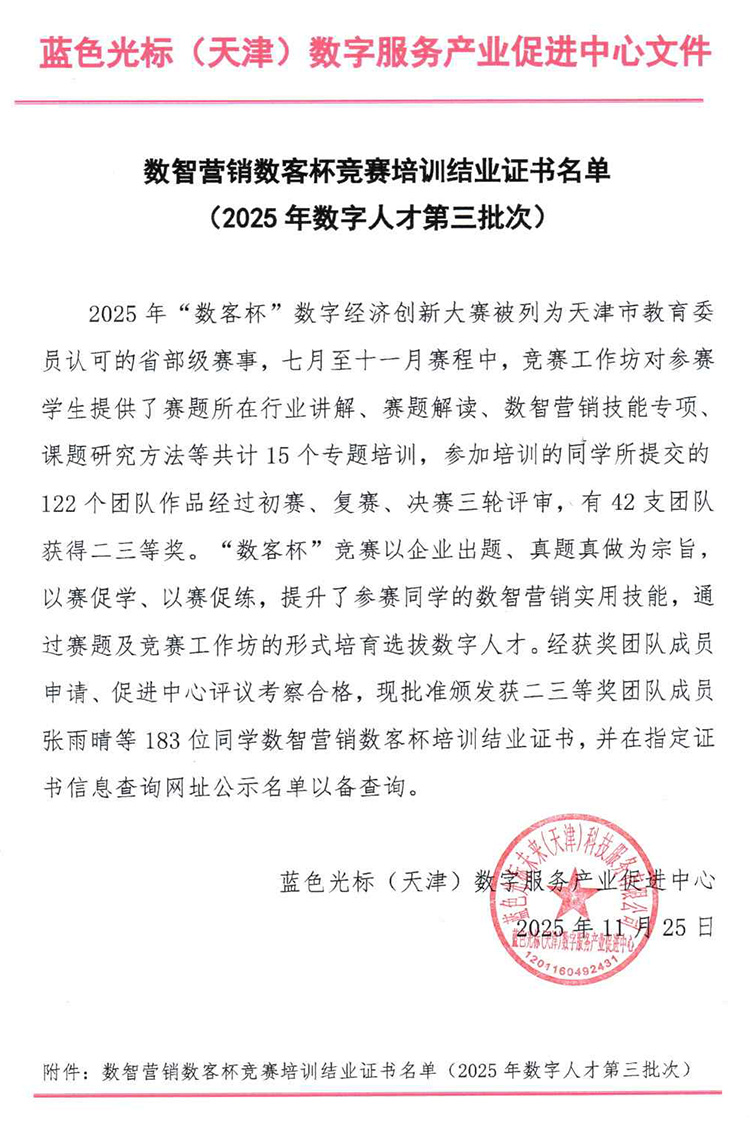 数智营销数客杯竞赛培训结业证书名单 - 2025数字人才认证第三批次 |