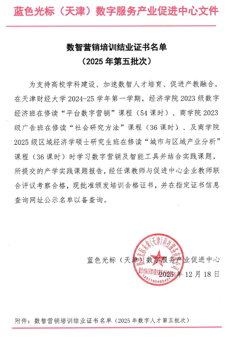 数智营销培训结业证书名单(2025年第五批次)